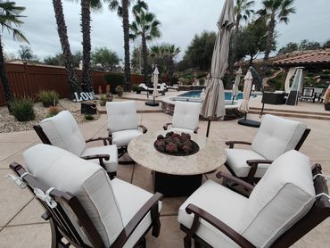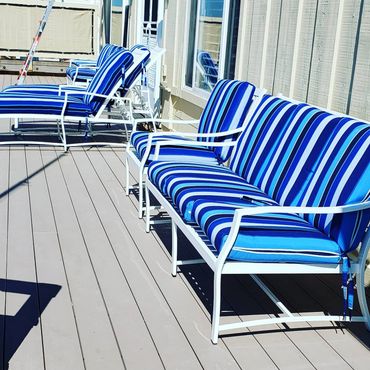 Sling patio furniture are great for lounging and comfortable. They are weather resistant and low maintenance. If your sling chairs are looking faded, saggy or ripped, we can replace the fabric give your chairs new life.